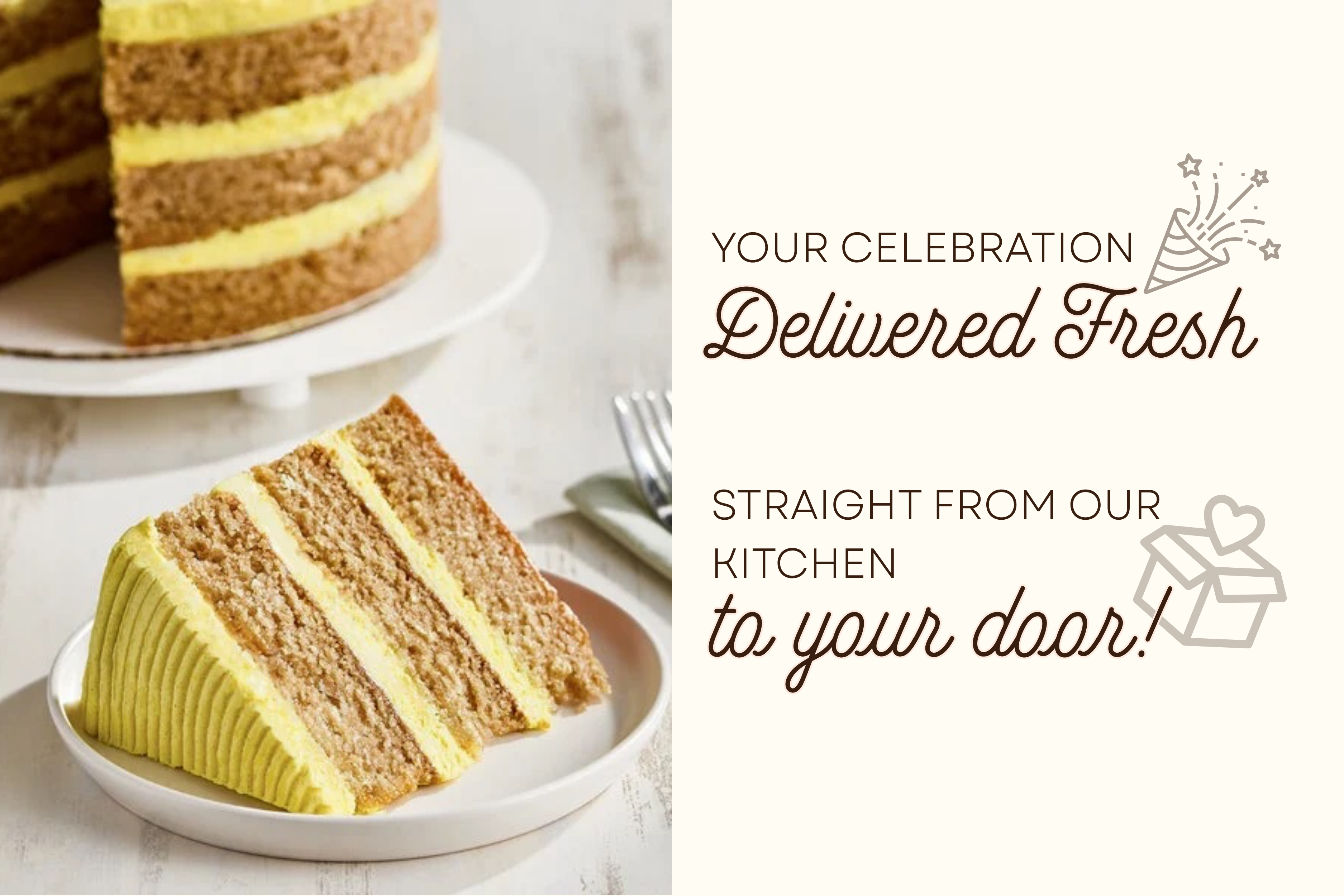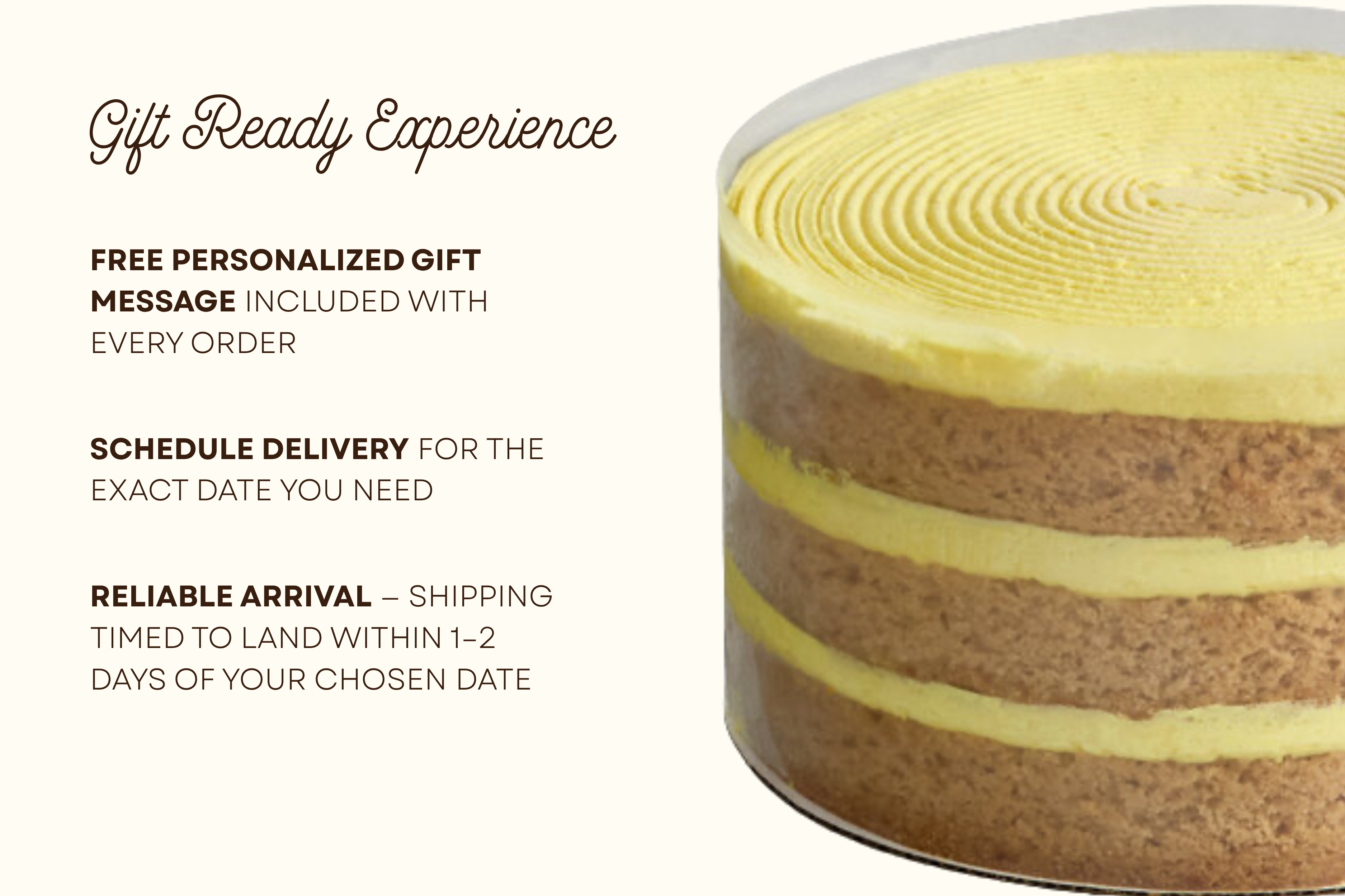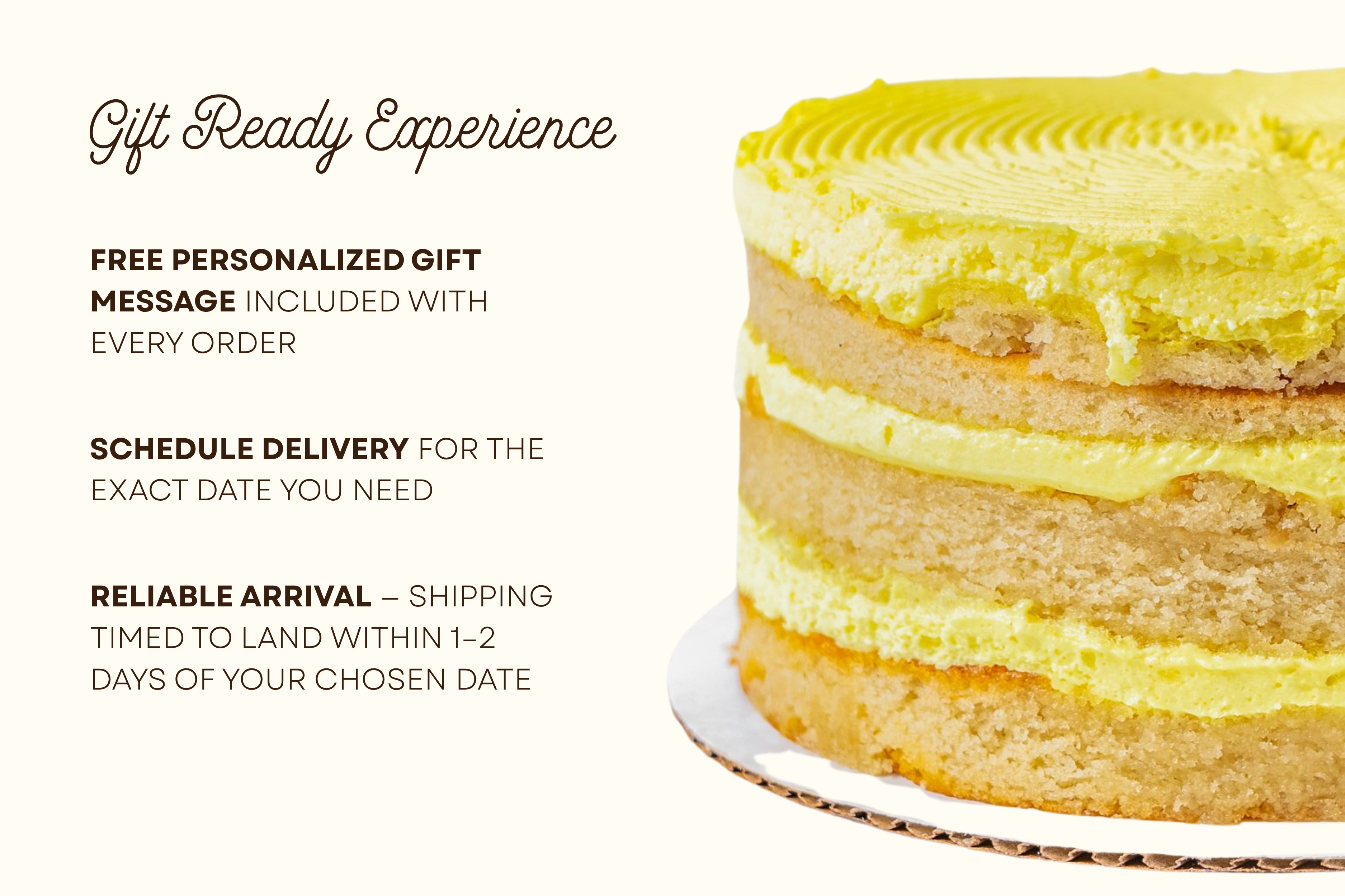 All cakes ship with two-day transit once they leave our bakery (not two days from the date you order). You can select your desired delivery date during checkout, and we’ll bake, freeze, and ship so it arrives on time for your celebration.